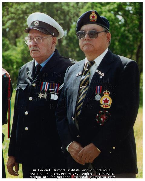 | Description: | This is an image of Métis veterans, Harold Lajomodiere and Frank Tomkins. The photograph was taken by Clément Chartier at Batoche. |