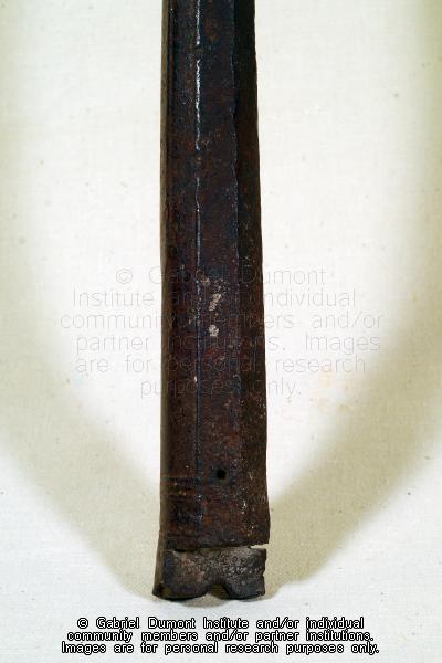 | Description: | This image (by Peter Beszterda) is rusted rifle barrel collected near Batoche by Dennis and Jean Fisher. It is part of the Dennis and Jean Fisher Collection. This collection contains archaeological artifacts taken from the battlefields of the 1885 Resistance as well as Fort Pitt (Saskatchewan), Cumberland House (Saskatchewan) and St. Peter’s Mission, Montana. The collection also includes various artifacts and ephemera relating to the 1885 Resistance and Gabriel Dumont. |