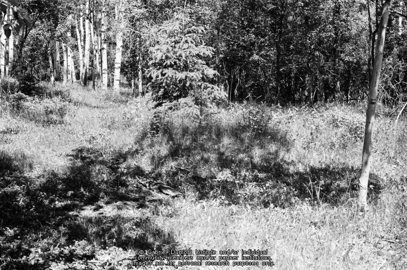 | Description: | This image is a photograph of the Kajewski site, Métis hivernant (``winterer``) cabins near Elkwater, Alberta. The site is in the Cypress Hills and this particular image was photographed in 1967 by Robson Bonnichsen.