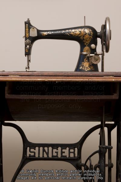 Description: This is an image of an 1899 Singer 27 sewing machine which is part of the Gabriel Dumont Institute permanent collection and is on display in the Institute’s museum and gallery in Saskatoon. The updated information related to the production date of the sewing machine was provided by Agatha Bonadio. This image was taken by Peter Beszterda.