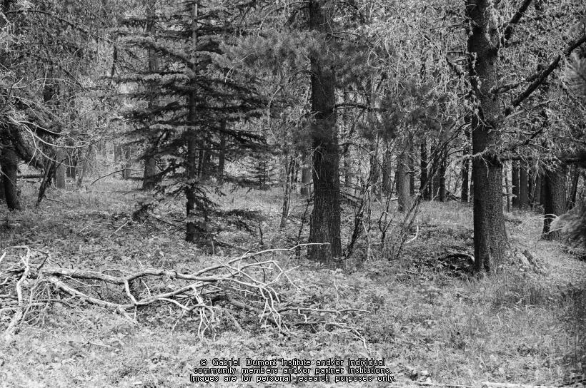 | Description: | This image is a photograph of the Kajewski site, Métis hivernant (``winterer``) cabins near Elkwater, Alberta. The site is in the Cypress Hills and this particular image was photographed in 1967 by Robson Bonnichsen.