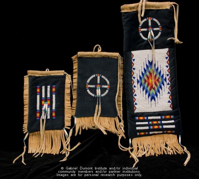 | Description: | This image of three beaded First Nations bags was taken by Peter Beszterda. |
