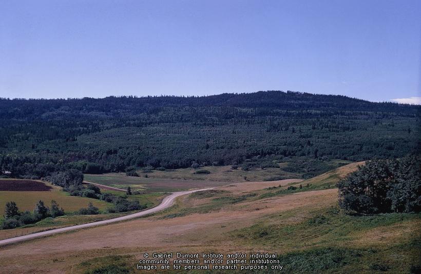 Description: This image of the entry into the Kajewski Site. This image is part of a collection of 45 images used in a slideshow presentation by Jack Elliott of the Kajewski Site, Cabins B and E. Jack Elliott`s 1971 MA thesis—``Hivernant Archaeology in the Cypress Hills``—is based on an archaeological reconstruction of Cabins B and E of the Kajewski cabin site near Elkwater Alberta in the Cypress Hills. In this thesis, Jack Eliott analyzes the archaeological reconstruction of two Métis hivernant (``winterer``) cabins in the western half of the Cypress Hills. Hivernant is the French word for ``winterer,`` and in the Métis context refers to those Métis bison hunters and their families who settled during the winter in wooded, sheltered environments on the southern prairies such as the Cypress Hills, Wood Mountain, and Willow Bunch. These locales offered shelter from fierce prairie winters and provided game, wood, and fresh water. At the Kajewski site, Jack noticed that in the bison processing pits and in other areas of the cabin floors, there was a mixture of Euro-Canadian/American iron tools and older, Pre-Contact-style First Nation’s stone tools. At the time, archaeologists were puzzled by this mixture of tool cultures at the site and within its stratigraphy (the layer of sedimentation at an archaeological site), suggesting that the Métis at these wintering sites used the ``old`` and ``new`` tools interchangeably. Archaeologists thought it curious that the Métis hivernants willingly used stone tools when ``better`` iron tools were available to scrap bison hides and cut meat. Jack argued that the Métis used both tool types while his colleagues thought otherwise. This debate has continued to this day.