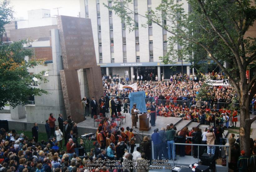On September 24, 1998 in Ottawa, Senator John Boucher (1938-2010), on behalf of the Métis Nation, wrapped a Métis sash around Nelson Mandela’s waist during the then President of South Africa’s state visit to Canada. When Mandela addressed Parliament later that day, he wore the sash. According to Boucher’s daughter, Dori Halcro, the late Métis senator was told not to touch the South African leader but he nixed that idea and tied the sash around Mandela’s waist and gave him the Métis name, “Diamant” (‘Diamond” in French) because Mandela was a luminous diamond who shone light on his people, and arguably on the entire world. Mandela was one of Boucher’s personal heroes; so this was a great thrill for him. This moment also drew the international spotlight of the world’s media on Canada’s relationship with the Métis. |