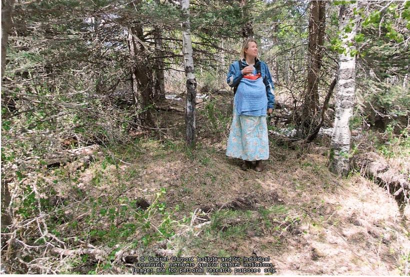 Description: This image is of the same Cabin B location photographed again on May 26th, 2010. This image is part of a collection of 45 images used in a slideshow presentation by Jack Elliott of the Kajewski Site, Cabins B and E. Jack Elliott`s 1971 MA thesis—``Hivernant Archaeology in the Cypress Hills``—is based on an archaeological reconstruction of Cabins B and E of the Kajewski cabin site near Elkwater Alberta in the Cypress Hills. In this thesis, Jack Eliott analyzes the archaeological reconstruction of two Métis hivernant (``winterer``) cabins in the western half of the Cypress Hills. Hivernant is the French word for ``winterer,`` and in the Métis context refers to those Métis bison hunters and their families who settled during the winter in wooded, sheltered environments on the southern prairies such as the Cypress Hills, Wood Mountain, and Willow Bunch. These locales offered shelter from fierce prairie winters and provided game, wood, and fresh water. At the Kajewski site, Jack noticed that in the bison processing pits and in other areas of the cabin floors, there was a mixture of Euro-Canadian/American iron tools and older, Pre-Contact-style First Nation’s stone tools. At the time, archaeologists were puzzled by this mixture of tool cultures at the site and within its stratigraphy (the layer of sedimentation at an archaeological site), suggesting that the Métis at these wintering sites used the ``old`` and ``new`` tools interchangeably. Archaeologists thought it curious that the Métis hivernants willingly used stone tools when ``better`` iron tools were available to scrap bison hides and cut meat. Jack argued that the Métis used both tool types while his colleagues thought otherwise. This debate has continued to this day.