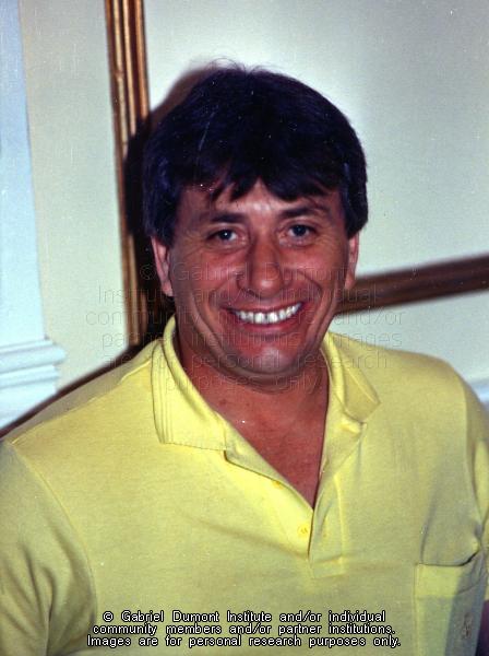 | Description: | This image is of Ed Pelletier at a Métis Society of Saskatchewan conference in the winter of 1988-1989. |