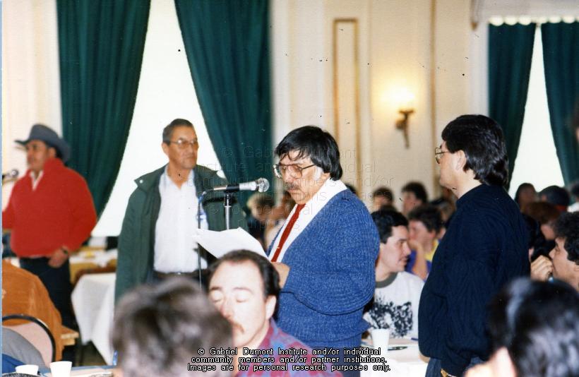 | Description: | This image is of Roy Fosseneuve at a Métis Society of Saskatchewan conference in the winter of 1988-1989. |