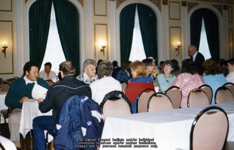 | Description: | This image is of conference delegates at a Métis Society of Saskatchewan conference in the winter of 1988-1989. |