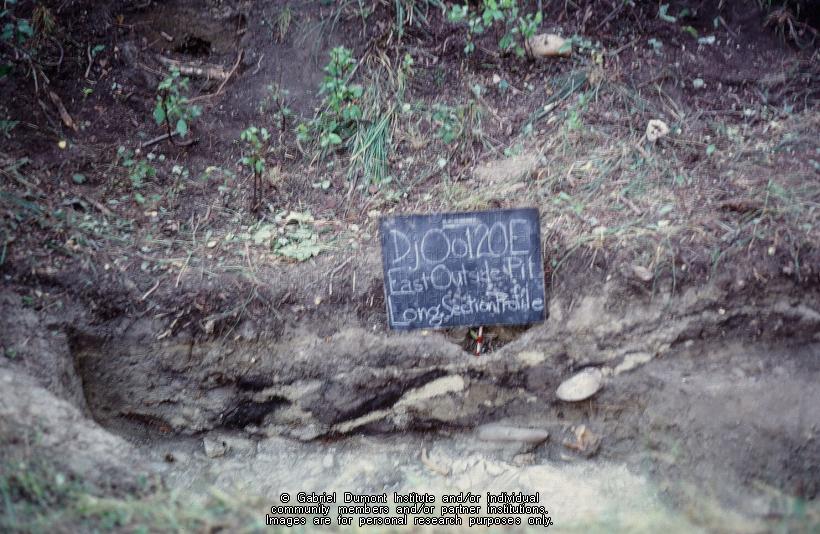 | Description: | This image is of a stratigraphic x-section through a multiple-year refuse pit outside Cabin E. This image is part of a collection of 45 images used in a slideshow presentation by Jack Elliott of the Kajewski Site, Cabins B and E.  Jack Elliott`s 1971 MA thesis—``Hivernant Archaeology in the Cypress Hills``—is based on an archaeological reconstruction of Cabins B and E of the Kajewski cabin site near Elkwater Alberta in the Cypress Hills. In this thesis, Jack Eliott analyzes the archaeological reconstruction of two Métis hivernant (``winterer``) cabins in the western half of the Cypress Hills. Hivernant is the French word for ``winterer,`` and in the Métis context refers to those Métis bison hunters and their families who settled during the winter in wooded, sheltered environments on the southern prairies such as the Cypress Hills, Wood Mountain, and Willow Bunch. These locales offered shelter from fierce prairie winters and provided game, wood, and fresh water. At the Kajewski site, Jack noticed that in the bison processing pits and in other areas of the cabin floors, there was a mixture of Euro-Canadian/American iron tools and older, Pre-Contact-style First Nation’s stone tools. At the time, archaeologists were puzzled by this mixture of tool cultures at the site and within its stratigraphy (the layer of sedimentation at an archaeological site), suggesting that the Métis at these wintering sites used the ``old`` and ``new`` tools interchangeably. Archaeologists thought it curious that the Métis hivernants willingly used stone tools when ``better`` iron tools were available to scrap bison hides and cut meat. Jack argued that the Métis used both tool types while his colleagues thought otherwise. This debate has continued to this day.