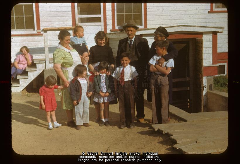 This image is of Miss Isabel Scriver and Charlie Trottier of Loon Lake; Also Miss Isable Campbell of North Battleford and Miss Laura Franey of Meota; Bing Crosby now Joe Louis, Green Lake, Saskatchewan, October 3, 1948. This image has been graciously provided by the Saskatchewan History and Folklore Society, through executive director Kristin Enns-Kavanagh, for use on this website, and is to be used for research purposes only. The reproduction of this image in whole or in part is strictly prohibited without the permission of the copyright holder. |
