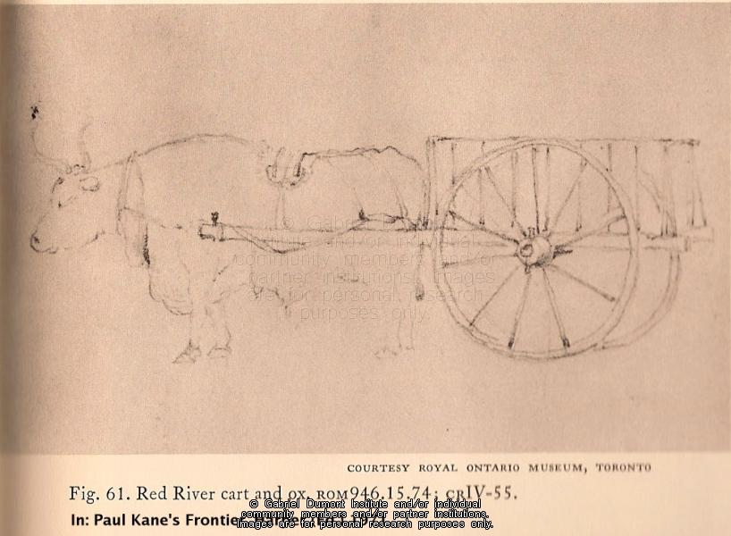 | Description: | This image is of a brigade out hunting, Paul Kane sketches of Red River cart & harnessed ox as primary brigade vehicle, putting up camp, camp scene, brigade leaders meeting before a hunt. This image is part of a slide show presentation by Jack Elliott relating to Métis hivernant bison hunters and hide workers in the Cypress Hills. The 24 images in this collection scans of published Paul Kane paintings and sketches (#7-11, 14-15), photos from Boissevain Community Archives (#3-5), artifact photos from the Kajewski Site (as described above #12-13, 20, 22-24) and various other scans and images — as referenced or described in the slide show talk notes, and 4 copies of informant permissions for published use of interviews.  Jack Elliott`s 1971 MA thesis—``Hivernant Archaeology in the Cypress Hills``—is based on an archaeological reconstruction of Cabins B and E of the Kajewski cabin site near Elkwater Alberta in the Cypress Hills. In this thesis, Jack Eliott analyzes the archaeological reconstruction of two Métis hivernant (``winterer``) cabins in the western half of the Cypress Hills. Hivernant is the French word for ``winterer,`` and in the Métis context refers to those Métis bison hunters and their families who settled during the winter in wooded, sheltered environments on the southern prairies such as the Cypress Hills, Wood Mountain, and Willow Bunch. These locales offered shelter from fierce prairie winters and provided game, wood, and fresh water. At the Kajewski site, Jack noticed that in the bison processing pits and in other areas of the cabin floors, there was a mixture of Euro-Canadian/American iron tools and older, Pre-Contact-style First Nation’s stone tools. At the time, archaeologists were puzzled by this mixture of tool cultures at the site and within its stratigraphy (the layer of sedimentation at an archaeological site), suggesting that the Métis at these wintering sites used the ``old`` and ``new`` tools interchangeably. Archaeologists thought it curious that the Métis hivernants willingly used stone tools when ``better`` iron tools were available to scrap bison hides and cut meat. Jack argued that the Métis used both tool types while his colleagues thought otherwise. This debate has continued to this day.