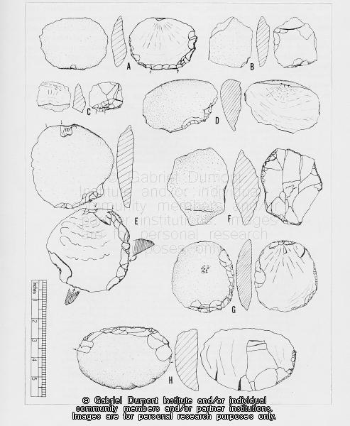 | Description: | This image is of drawings of quartzite teshoa cobble stone tools from the Gull Lake Bison Drive Site in Saskatchewan. This image is part of a slide show presentation by Jack Elliott relating to Métis hivernant bison hunters and hide workers in the Cypress Hills. The 24 images in this collection scans of published Paul Kane paintings and sketches (#7-11, 14-15), photos from Boissevain Community Archives (#3-5), artifact photos from the Kajewski Site (as described above #12-13, 20, 22-24) and various other scans and images — as referenced or described in the slide show talk notes, and 4 copies of informant permissions for published use of interviews.  Jack Elliott`s 1971 MA thesis—``Hivernant Archaeology in the Cypress Hills``—is based on an archaeological reconstruction of Cabins B and E of the Kajewski cabin site near Elkwater Alberta in the Cypress Hills. In this thesis, Jack Eliott analyzes the archaeological reconstruction of two Métis hivernant (``winterer``) cabins in the western half of the Cypress Hills. Hivernant is the French word for ``winterer,`` and in the Métis context refers to those Métis bison hunters and their families who settled during the winter in wooded, sheltered environments on the southern prairies such as the Cypress Hills, Wood Mountain, and Willow Bunch. These locales offered shelter from fierce prairie winters and provided game, wood, and fresh water. At the Kajewski site, Jack noticed that in the bison processing pits and in other areas of the cabin floors, there was a mixture of Euro-Canadian/American iron tools and older, Pre-Contact-style First Nation’s stone tools. At the time, archaeologists were puzzled by this mixture of tool cultures at the site and within its stratigraphy (the layer of sedimentation at an archaeological site), suggesting that the Métis at these wintering sites used the ``old`` and ``new`` tools interchangeably. Archaeologists thought it curious that the Métis hivernants willingly used stone tools when ``better`` iron tools were available to scrap bison hides and cut meat. Jack argued that the Métis used both tool types while his colleagues thought otherwise. This debate has continued to this day.