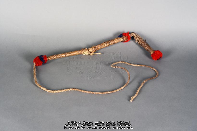| Description: | This whip was made by Gabriel Dumont and was in the long-term position of the Nault family. It was donated to the Gabriel Dumont Institute by Francis and Elaine (Nault) Klyne on behalf of the Nault family.