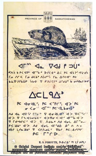 Beaver Conservation Poster, Saskatchewan, Cree Syllabics, 1940s |