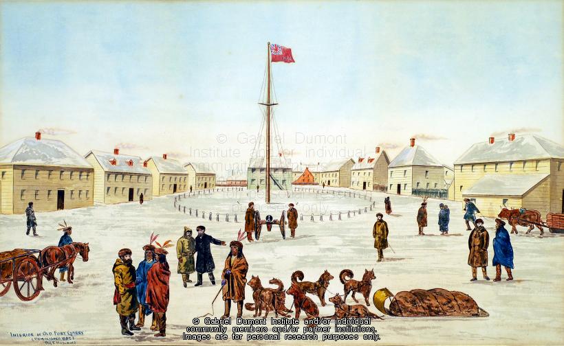 | Description: | This image is a lithograph of a watercolour of the interior of Old (Upper) Fort Garry from 1910. The original lithograph is part of the Gabriel Dumont Institute. |