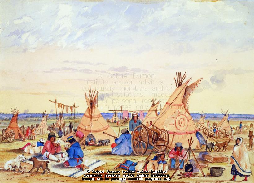 | Title: | Métis Bison Hunting Camp, Watercolour |