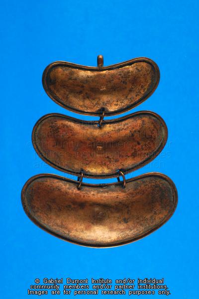| Description: | This image is of a HBC set of gorgets or throat protectors. It was developed by the British Army, but was used for decorative purposes during the fur trade. This artifact is part of the Gabriel Dumont Institute collection. |