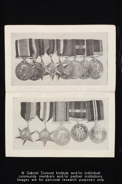 This is an Image of the “Information Regarding Mounting and Wearing of Decorations, Campaign Stars and Medals Booklet” from the Second World War. Edward (“Ed’) Dumont was a veteran of the Second World War. This collection was donated to the Gabriel Dumont Institute by his niece, Elsie (Dumont) Busby and her husband, Berry Busby. |