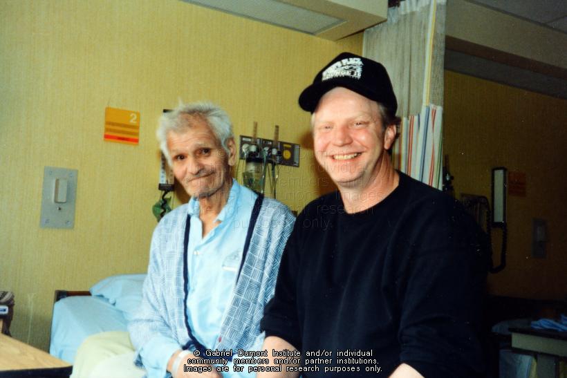 This is an image of Edward Dumont with Berry Busby, Edward's nephew-in-law. Edward (“Ed’) Dumont was a veteran of the Second World War. This collection was donated to the Gabriel Dumont Institute by his niece, Elsie (Dumont) Busby and her husband, Berry Busby. |