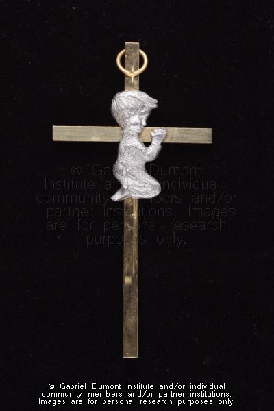| Description: | This is an image of a First Communion crucifix. Edward (“Ed’) Dumont was a veteran of the Second World War. This collection was donated to the Gabriel Dumont Institute by his niece, Elsie (Dumont) Busby and her husband, Berry Busby.