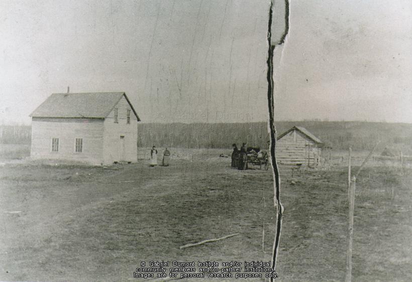 This image of the farmhouse of William Boyer and Julienne Bousquet, located on Lot 9 in Saint-Laurent-de-Grandin, Saskatchewan, 1900. Source: Brenda Boyer-Percell. This image must not be reproduced. The original source of this image is with Parks Canada, Batoche National Historic Site. |