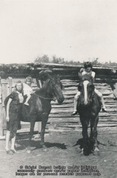 | Description: | This image is of (L-R) Marie Anne Boyer (1929-1990), Alexina Boyer (1941-1955), Estelle Boyer (1935-2012), and Rosemarie Boyer (1939-2021). Rosemarie is behind Estelle on the horse.