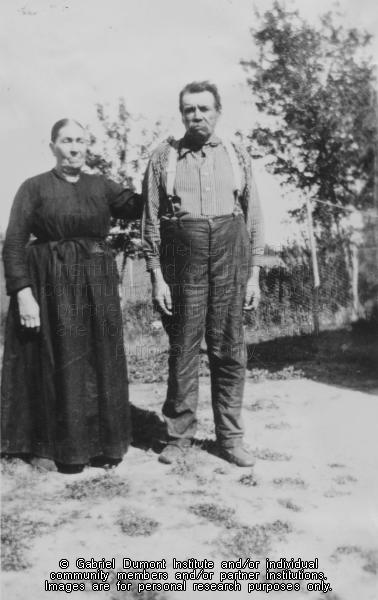 Description: This is an image (L-R) of Genevieve Dumas (1858-1923) and Joseph Laderoute (1855-1931). Source: Brenda Boyer-Percell. This image must not be reproduced. The original source of this image is with Estelle Boyer.