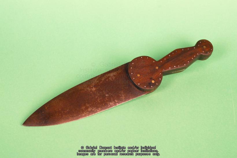 | Description: | This image is a replica skinning/scalping knife. This artifact is part of the Gabriel Dumont Institute collection. |