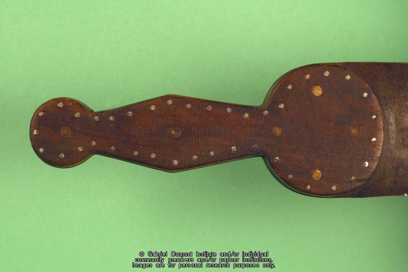 | Description: | This image is a replica skinning/scalping knife. This artifact is part of the Gabriel Dumont Institute collection. |