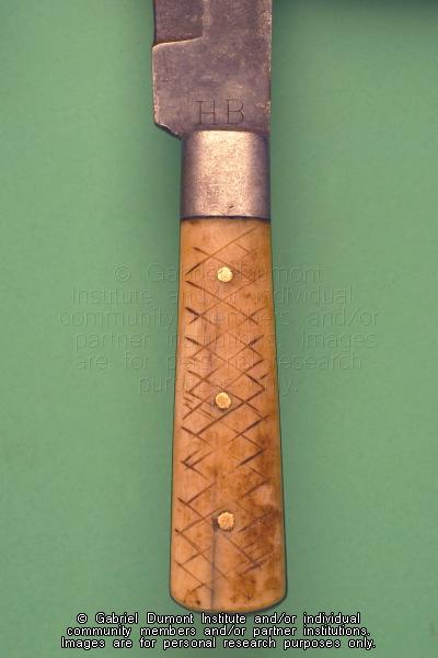 | Description: | This image is a butcher knife from the mid-1800s. This artifact is part of the Gabriel Dumont Institute collection. |