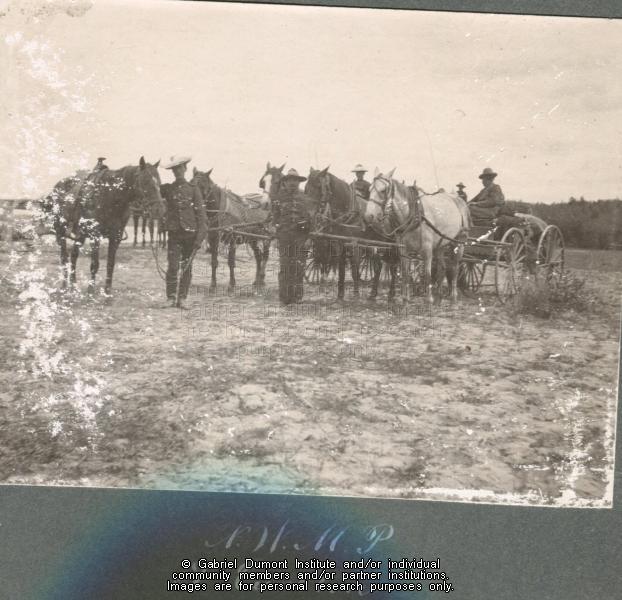 | Description: | North-West Mounted Police escort for the Half-Breed Commissioners, Carlton, 1900. This image has been graciously provided by the Duck Lake Regional Interpretive Centre for use on this website. It is available for research purposes only. The reproduction of this image in whole or in part is strictly prohibited without the permission of the copyright holder. |