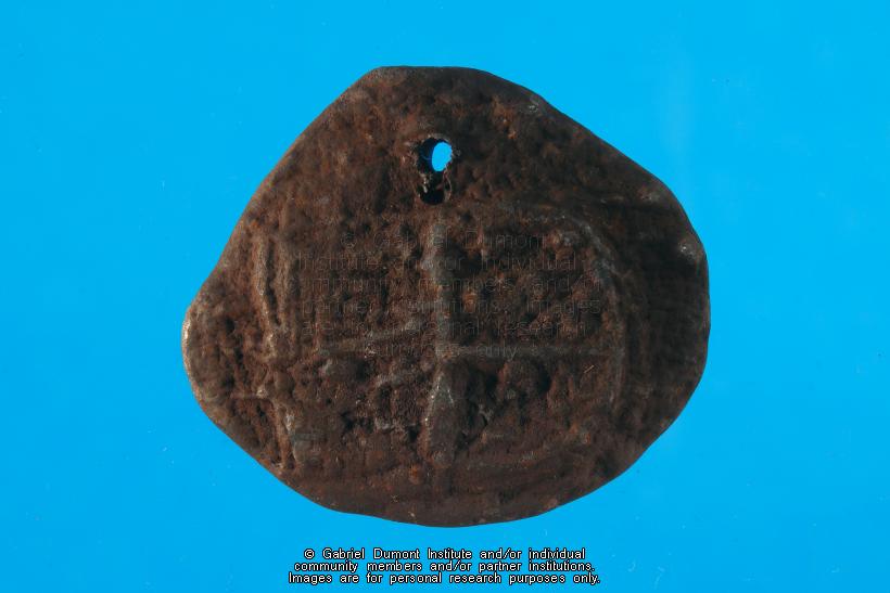 | Description: | This image is of one two HBC fur trade bale seals from Norway House (Manitoba) that are in the Gabriel Dumont Institute collection. |