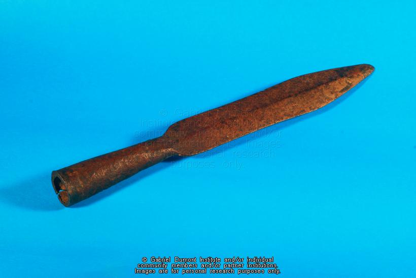 | Description: | This image is of a bison hunting lance from the early nineteenth century. This artifact is in the Gabriel Dumont Institute collection. |