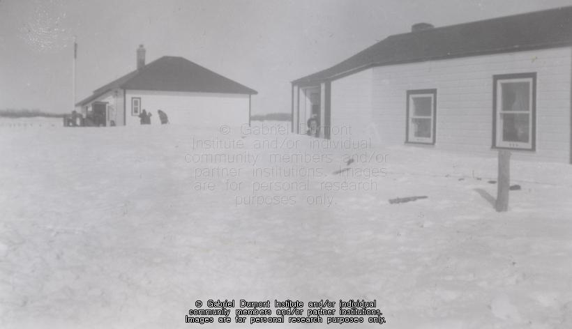 This is a photograph of the teacherage of the Allary School in in Crescent Lake, Saskatchewan.This photograph is part of the Nancy Leake Collection. This photograph is for research purposes only and cannot be preproduced. In 2017, Nancy Leake (née Hirsch) donated several archival files relating to her family’s experience of living in Crescent Lake, Saskatchewan—a Métis road allowance community. In 1946, her father, John S. Hirsch (1898-1995) was hired as the school’s first schoolteacher and community relief worker. Her mother, Elizabeth Mary Hirsch (1914-2013) also taught at Crescent Lake School. The Hirsch family lived and worked in Crescent Lake for ten years from 1946 to 1956. Nancy has many wonderful memories of living in Crescent Lake, which she wrote about in her memoires and is included in this collection. The Nancy Leake Collection consists of the following items: 1) Her memoirs of Crescent Lake School; 2) Elven Daily School Registers for the School prepared by her father, John S. Hirsch; and 3) 57 photographs. |