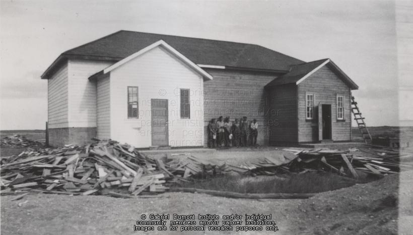 This photograph is of the Crescent Lake School Expansion in 1948. This photograph is part of the Nancy Leake Collection. This photograph is for research purposes only and cannot be preproduced. In 2017, Nancy Leake (née Hirsch) donated several archival files relating to her family’s experience of living in Crescent Lake, Saskatchewan—a Métis road allowance community. In 1946, her father, John S. Hirsch (1898-1995) was hired as the school’s first schoolteacher and community relief worker. Her mother, Elizabeth Mary Hirsch (1914-2013) also taught at Crescent Lake School. The Hirsch family lived and worked in Crescent Lake for ten years from 1946 to 1956. Nancy has many wonderful memories of living in Crescent Lake, which she wrote about in her memoires and is included in this collection. The Nancy Leake Collection consists of the following items: 1) Her memoirs of Crescent Lake School; 2) Elven Daily School Registers for the School prepared by her father, John S. Hirsch; and 3) 57 photographs. |