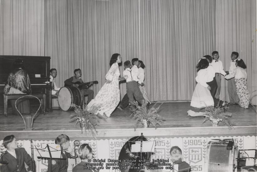 This is a photograph of the Crescent Lake Square Dancing Troupe taken in 1952 or 1953. Dorothy Azure is on piano. This photograph is part of the Nancy Leake Collection. This photograph is for research purposes only and cannot be preproduced. In 2017, Nancy Leake (née Hirsch) donated several archival files relating to her family’s experience of living in Crescent Lake, Saskatchewan—a Métis road allowance community. In 1946, her father, John S. Hirsch (1898-1995) was hired as the school’s first schoolteacher and community relief worker. Her mother, Elizabeth Mary Hirsch (1914-2013) also taught at Crescent Lake School. The Hirsch family lived and worked in Crescent Lake for ten years from 1946 to 1956. Nancy has many wonderful memories of living in Crescent Lake, which she wrote about in her memoires and is included in this collection. The Nancy Leake Collection consists of the following items: 1) Her memoirs of Crescent Lake School; 2) Elven Daily School Registers for the School prepared by her father, John S. Hirsch; and 3) 57 photographs. |