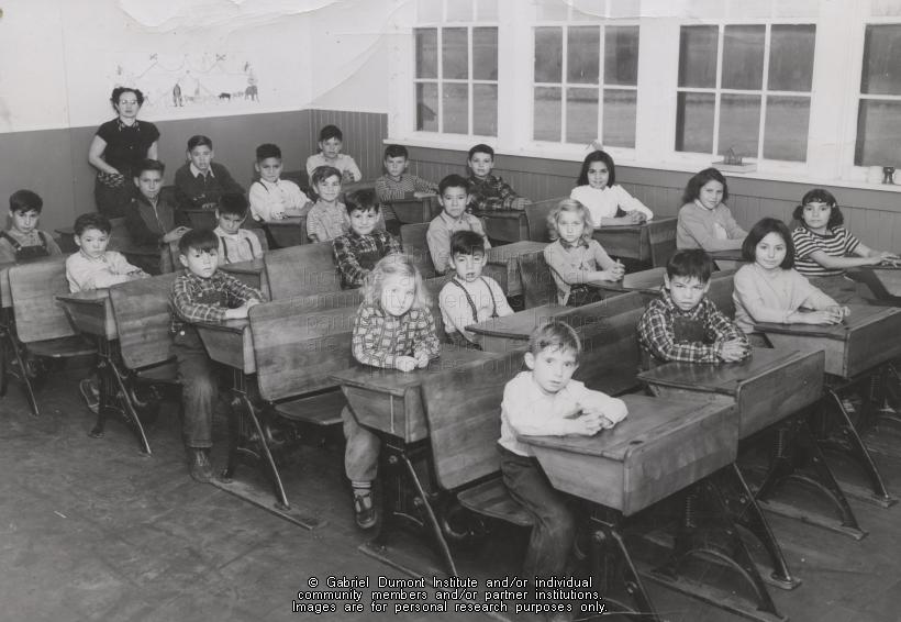 This is a photograph of Mary Hirsch with her students in Crescent Lake School and was taken in the 1950s. This photograph is part of the Nancy Leake Collection. This photograph is for research purposes only and cannot be preproduced. In 2017, Nancy Leake (née Hirsch) donated several archival files relating to her family’s experience of living in Crescent Lake, Saskatchewan—a Métis road allowance community. In 1946, her father, John S. Hirsch (1898-1995) was hired as the school’s first schoolteacher and community relief worker. Her mother, Elizabeth Mary Hirsch (1914-2013) also taught at Crescent Lake School. The Hirsch family lived and worked in Crescent Lake for ten years from 1946 to 1956. Nancy has many wonderful memories of living in Crescent Lake, which she wrote about in her memoires and is included in this collection. The Nancy Leake Collection consists of the following items: 1) Her memoirs of Crescent Lake School; 2) Elven Daily School Registers for the School prepared by her father, John S. Hirsch; and 3) 57 photographs. |