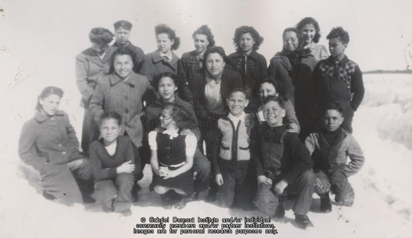 This a photograph of Métis schoolchildren at the Crescent Lake School and was taken in the 1950s.This photograph is part of the Nancy Leake Collection. This photograph is for research purposes only and cannot be preproduced. In 2017, Nancy Leake (née Hirsch) donated several archival files relating to her family’s experience of living in Crescent Lake, Saskatchewan—a Métis road allowance community. In 1946, her father, John S. Hirsch (1898-1995) was hired as the school’s first schoolteacher and community relief worker. Her mother, Elizabeth Mary Hirsch (1914-2013) also taught at Crescent Lake School. The Hirsch family lived and worked in Crescent Lake for ten years from 1946 to 1956. Nancy has many wonderful memories of living in Crescent Lake, which she wrote about in her memoires and is included in this collection. The Nancy Leake Collection consists of the following items: 1) Her memoirs of Crescent Lake School; 2) Elven Daily School Registers for the School prepared by her father, John S. Hirsch; and 3) 57 photographs. |