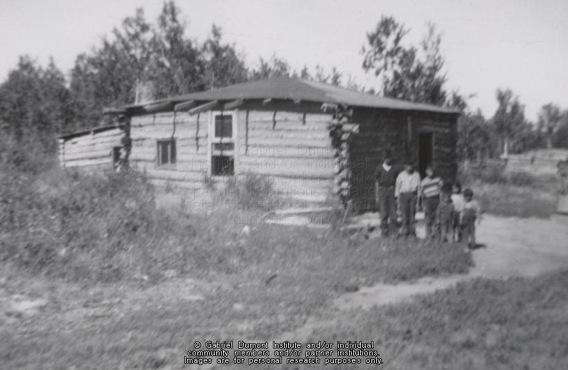 This is a photograph of a Métis family in front of their home in Crescent Lake and was taken in the 1950s.This photograph is part of the Nancy Leake Collection. This photograph is for research purposes only and cannot be preproduced. In 2017, Nancy Leake (née Hirsch) donated several archival files relating to her family’s experience of living in Crescent Lake, Saskatchewan—a Métis road allowance community. In 1946, her father, John S. Hirsch (1898-1995) was hired as the school’s first schoolteacher and community relief worker. Her mother, Elizabeth Mary Hirsch (1914-2013) also taught at Crescent Lake School. The Hirsch family lived and worked in Crescent Lake for ten years from 1946 to 1956. Nancy has many wonderful memories of living in Crescent Lake, which she wrote about in her memoires and is included in this collection. The Nancy Leake Collection consists of the following items: 1) Her memoirs of Crescent Lake School; 2) Elven Daily School Registers for the School prepared by her father, John S. Hirsch; and 3) 57 photographs. |