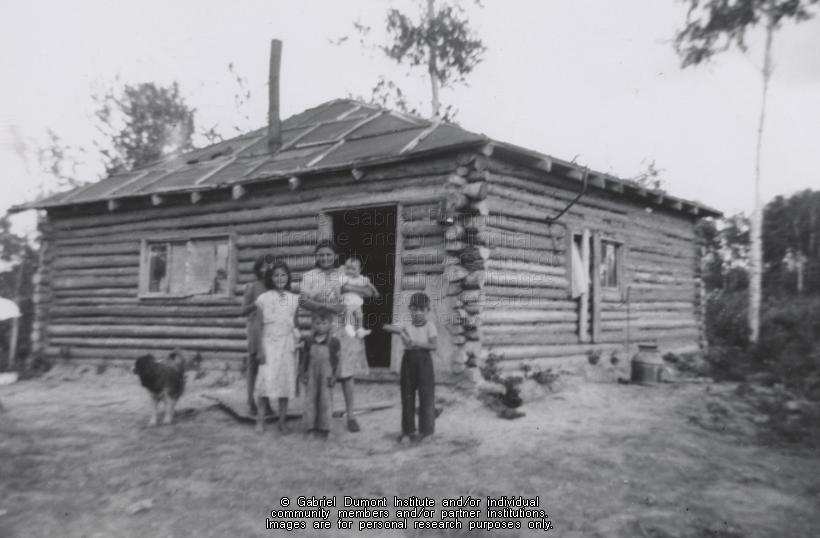 This is a photograph of a Métis family in front of their home in Crescent Lake and was taken in the 1950s.This photograph is part of the Nancy Leake Collection. This photograph is for research purposes only and cannot be preproduced. In 2017, Nancy Leake (née Hirsch) donated several archival files relating to her family’s experience of living in Crescent Lake, Saskatchewan—a Métis road allowance community. In 1946, her father, John S. Hirsch (1898-1995) was hired as the school’s first schoolteacher and community relief worker. Her mother, Elizabeth Mary Hirsch (1914-2013) also taught at Crescent Lake School. The Hirsch family lived and worked in Crescent Lake for ten years from 1946 to 1956. Nancy has many wonderful memories of living in Crescent Lake, which she wrote about in her memoires and is included in this collection. The Nancy Leake Collection consists of the following items: 1) Her memoirs of Crescent Lake School; 2) Elven Daily School Registers for the School prepared by her father, John S. Hirsch; and 3) 57 photographs. |