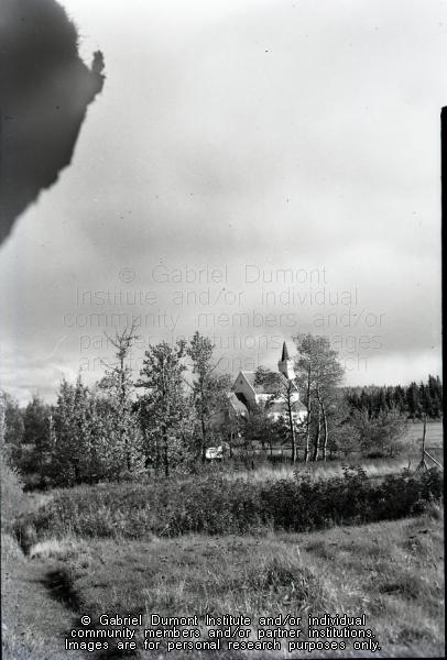 This is an image of the Holy Trinity Anglican Church in Stanley Mission and was taken by taken by Alfred L. Kirkby sometime in the 1940s or ‘50s. The Gabriel Dumont Institute thanks Teron Roberts, John and Margaret Irving, and Anne Hrynuik for providing the correct descriptive information for this photograph. |