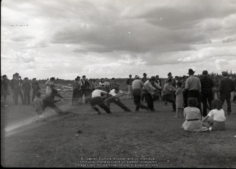 This photograph is part of a collection of images of a community celebration (perhaps Dominion Day, the precursor to Canada Day) in a northern community and were taken by Alfred L. Kirkby sometime in the 1940s or ‘50s. |