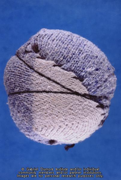 | Description: | Photograph of a cloth ball made from a wool sock. This is used to play children's games. This item is part of the Gabriel Dumont Institute Museum Collection. |