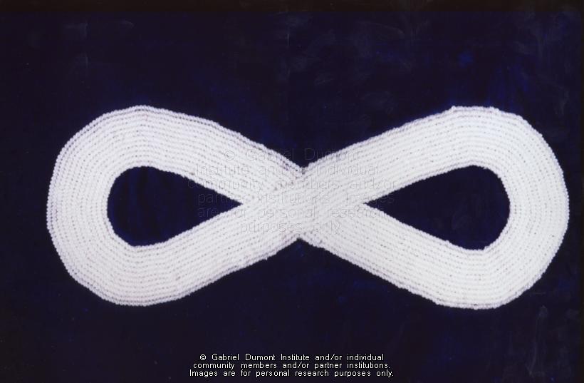 Description: Photograph of beadwork detail from the back of a vest made by Isabelle Impey (Dorion) of Cumberland House, Saskatchewan. The vest belonged to Louis Dorion.
