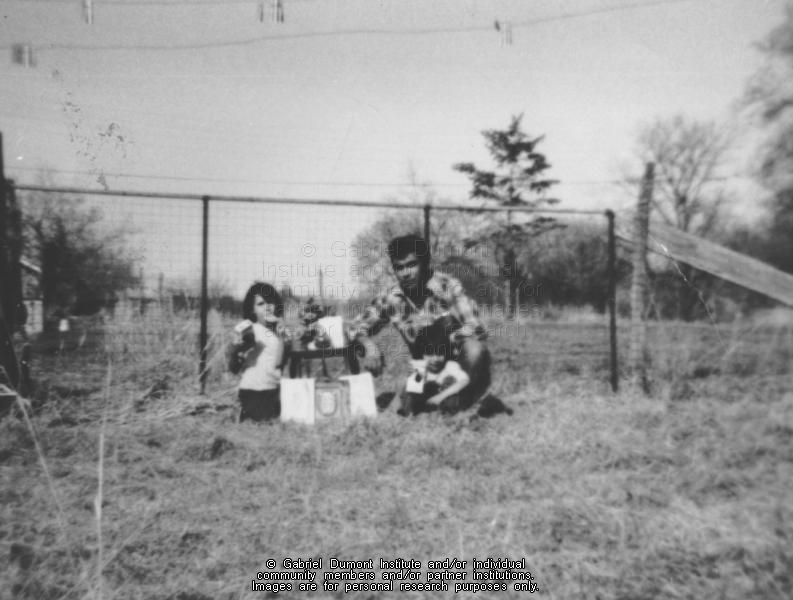 This is a photograph of Roy Brazeau and his two daughters, Belinda and Charlene. Corrected information for this photograph was provided by Kayla Brazeau, Belinda’s daughter. |