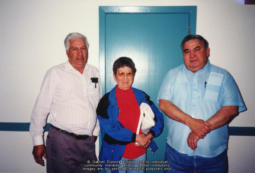 Photograph of Gilbert Pelletier, Stella Lavalley and Edwin St. Pierre, Métis Elders and keepers of the Michif language. |