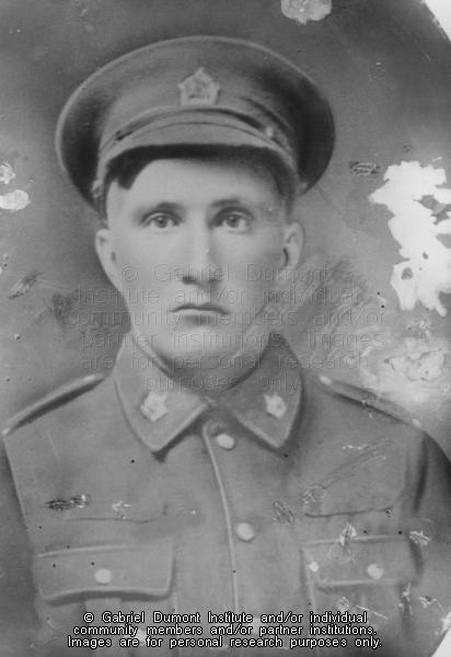 | Description: | Photograph of Alex Sinclair (Regiment # 3352256) wearing a World War I military uniform. He appears to be posed in a studio. |