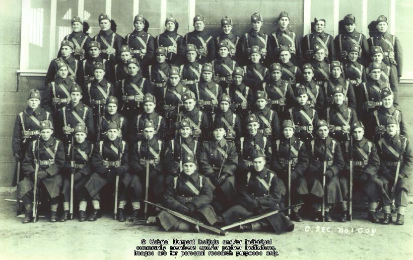 | Description: | Photograph of a large group of soldiers posed outdoors. The soldiers are in uniform, and they are wearing helmets and holding rifles. |