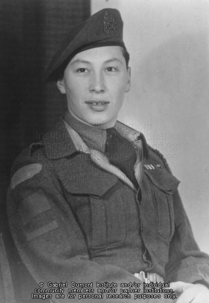| Description: | Photograph of Pte. Louis Laboucane (L-107828). Louis enlisted in 1943 and was discharged in 1946. He served with the South Saskatchewan Regiment. |