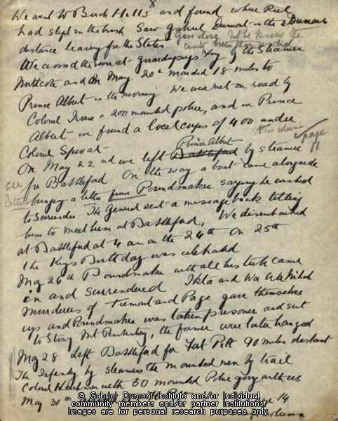 | Description: | Lieutenant Colonel A.C.D. Pigott wrote this document entitled “Resumé of the Riel Rebellion” during various engagements of the 1885 Resistance. This is one of only a few first-hand accounts by any member of the Canadian army during the 1885 Resistance. Pigott chronicled the 1885 Resistance fv+ |